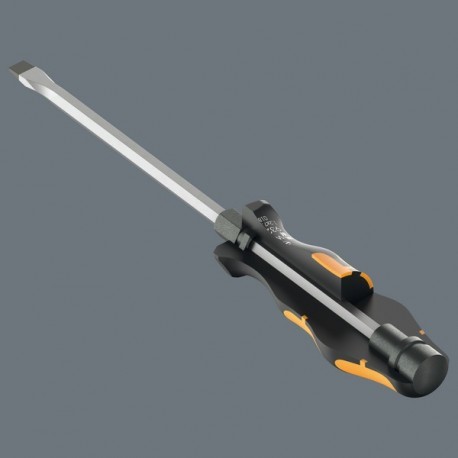 Jeu de tournevis-burins Wera, pour visser, buriner, mater et dégager des vis bloquées. Avec manche Kraftform multicomposants pour un travail rapide et en douceur. Kraftform Plus : zones dures pour une haute vitesse de travail, les zones tendres garantissant quant à elles une transmission de couple élevée. Avec lame hexagonale traversante réalisée dans le même matériau haut de gamme que les embouts – d’où une transmission de force sans déperdition, même lors de frappes au marteau. Le matériau à finition extra-rigide empêche l’ébrèchement ou la rupture de la lame. Avec heurtoir intégré, pour une durée de vie supérieure et une réduction du risque d’éclatement. Le plot hexagonal intégré permet la transmission de couples supérieurs en s’aidant d’une clé à fourche ou d’une clé polygonale. La pointe Wera Black Point, conjuguée à un procédé de trempe sophistiqué, garantit une haute longévité, une protection accrue contre la corrosion et un parfait ajustement. Avec dispositif hexagonal antiroulement empêchant les “échappées” importunes de l’outil sur le lieu de travail.